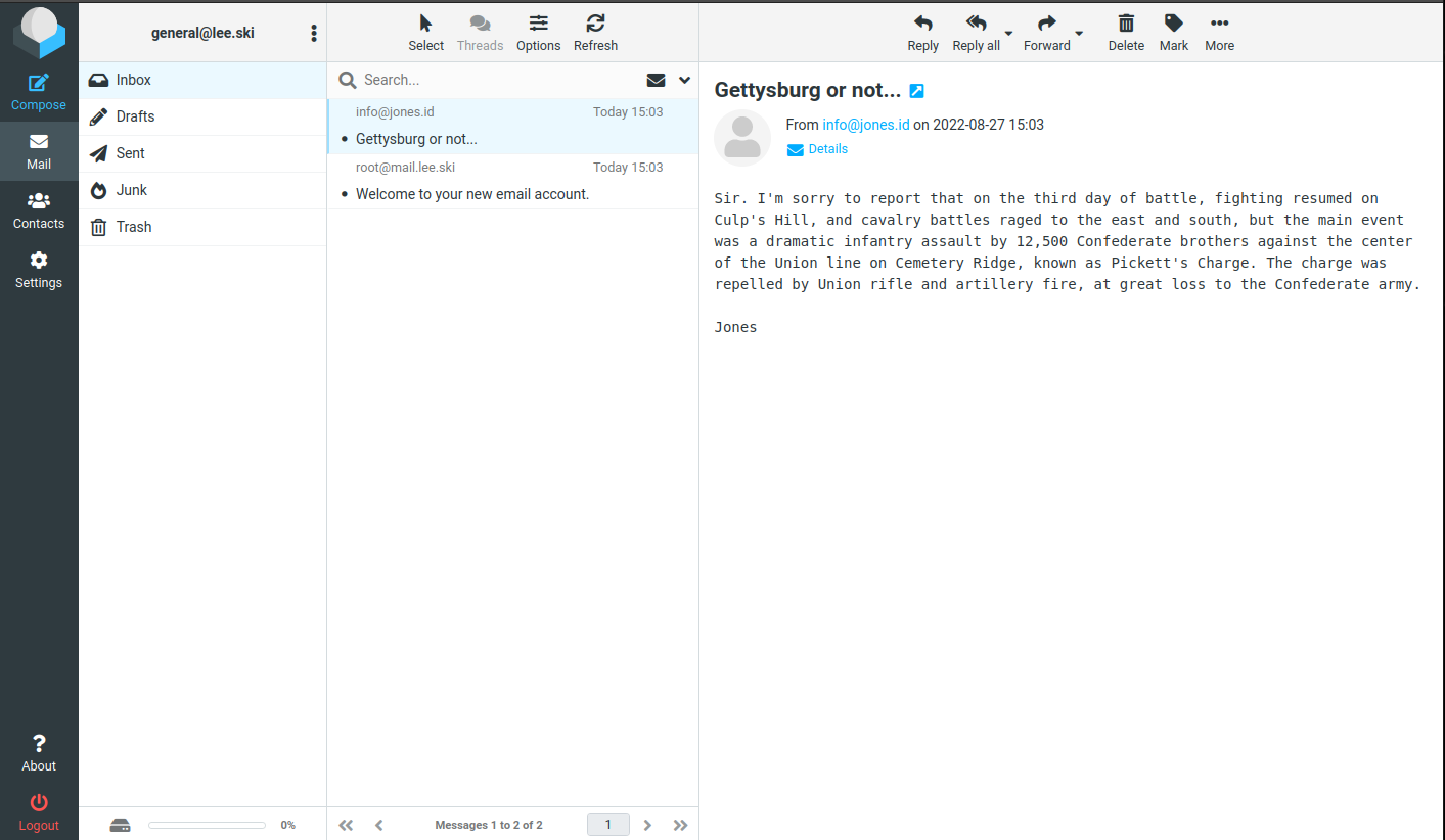 SMTP address: mail.your-family-name.id (non-encrypted port 25 or TLS encrypted port 587)